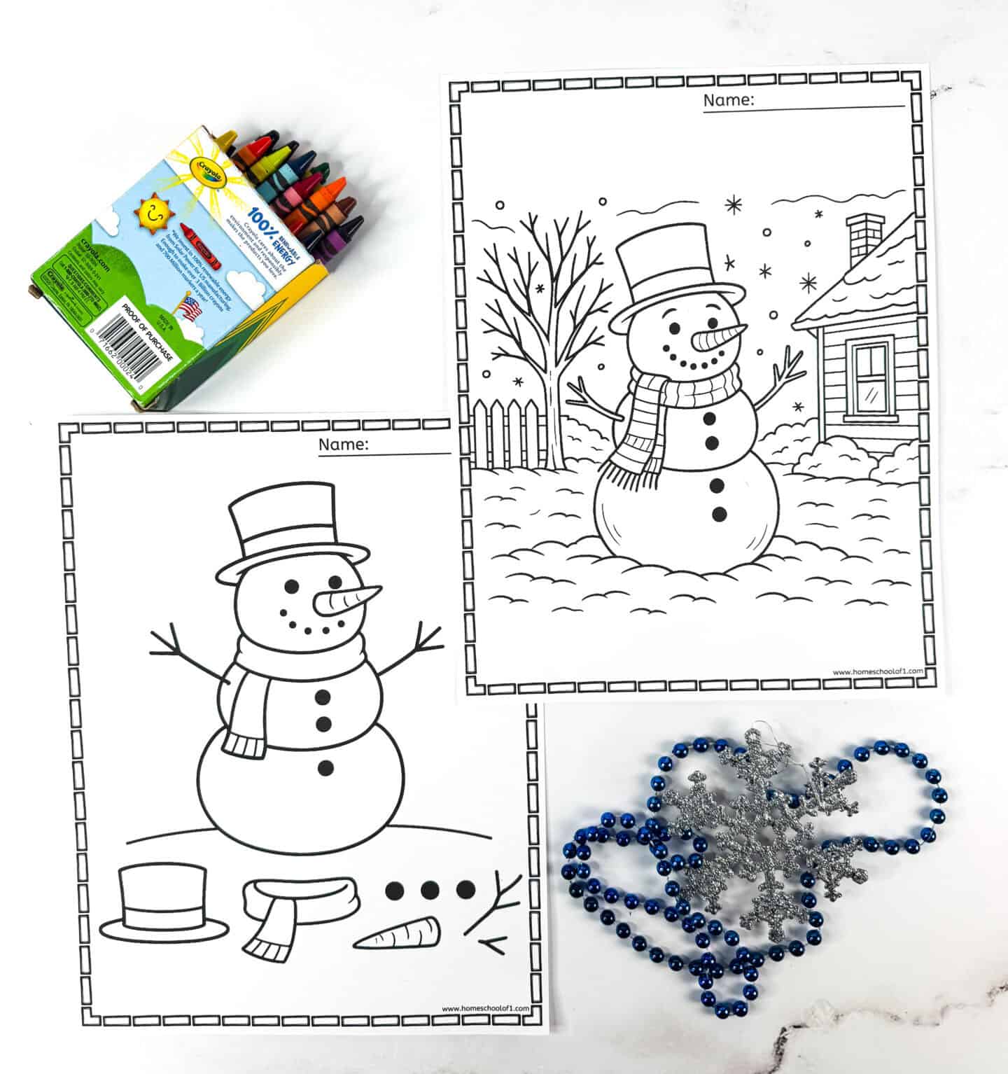 A quick look at each snowman coloring page and how it can support early learning or quiet winter play.