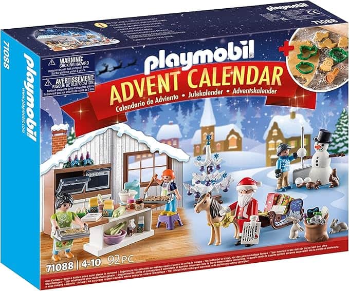 This one feels cozy and nostalgic. Each day adds a new piece to a kitchen scene, cookies, mixing bowls, little elves, and by Christmas Eve, kids have a full playset. A friendโs daughter adored it and used it alongside her dollhouse. Itโs perfect for imaginative kids who love pretend play and all things festive baking.