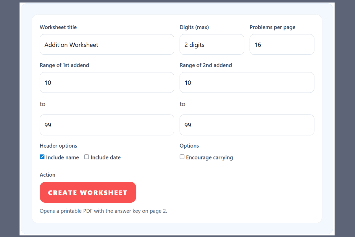 Each generator produces clean, ready-to-use PDFs that work well for homeschool, classrooms, or extra practice at home.