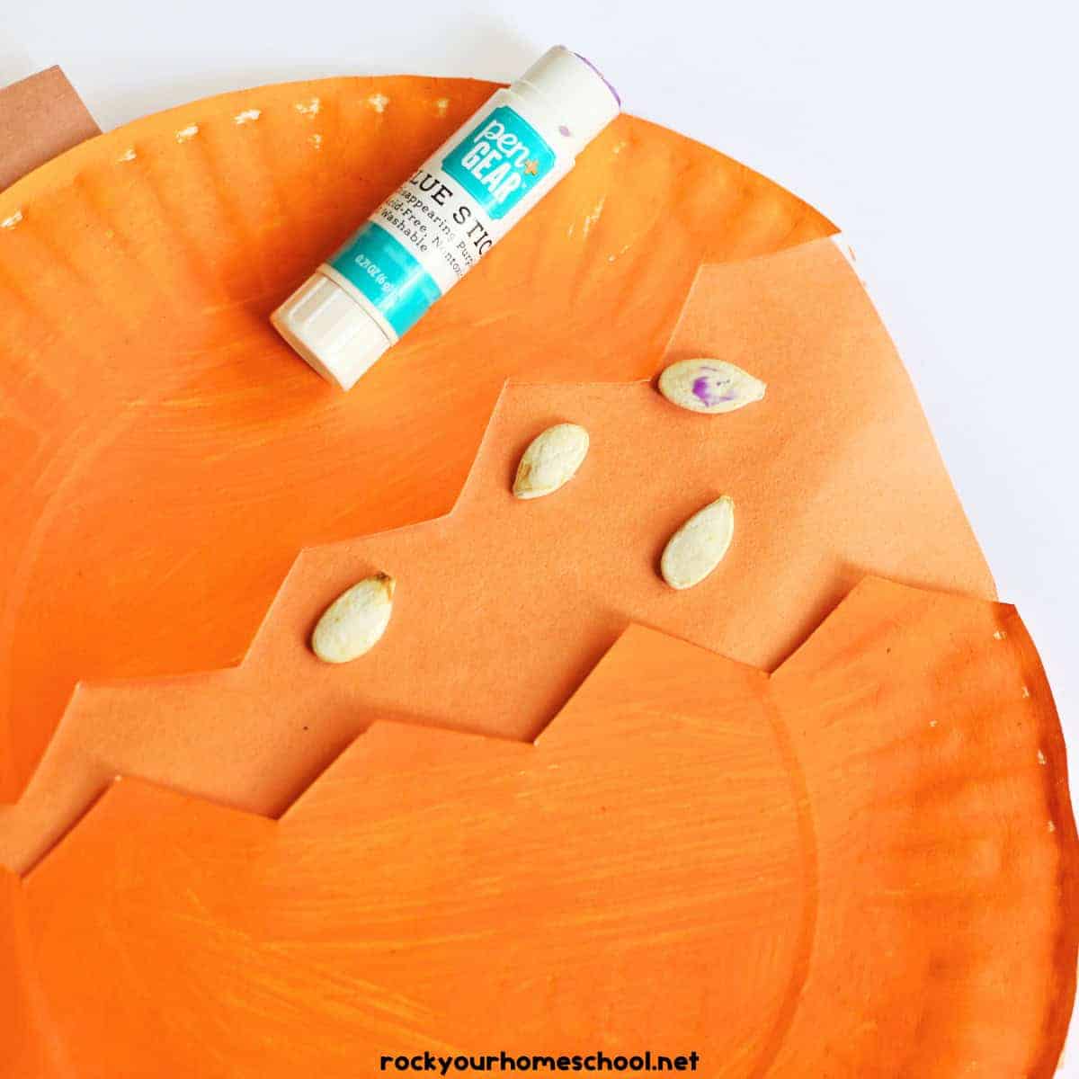 This paper plate craft lets kids “open up” a pumpkin to explore what’s inside, fibers, pulp, and seeds, without the cleanup of carving. It’s simple but surprisingly educational, helping visual learners understand the plant’s structure while giving them something fun to display afterward.