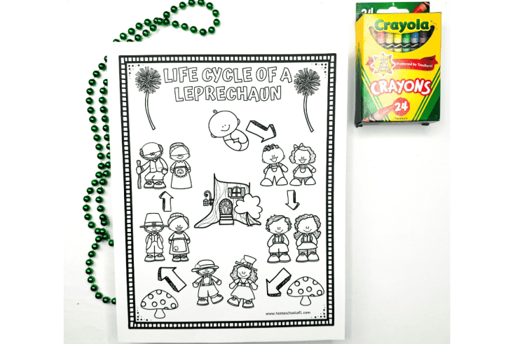Our special leprechaun life cycle worksheet offers a fun way to see leprechauns aging from babies to grandparents, with a charming leprechaun house on center stage. Beyond coloring, it's an opportunity to discuss growth, Irish folklore, and family dynamics, making it an ideal activity for learning and celebration.